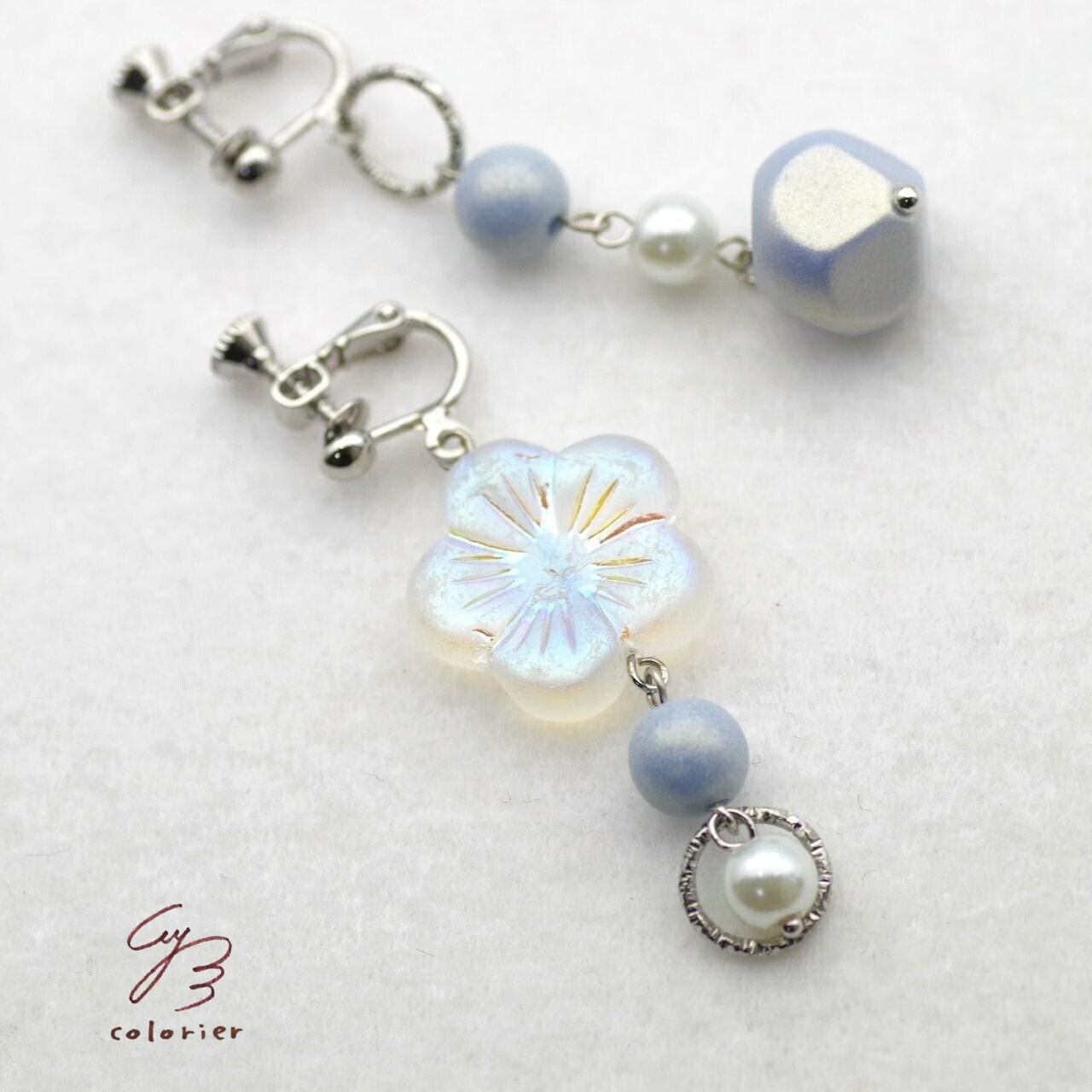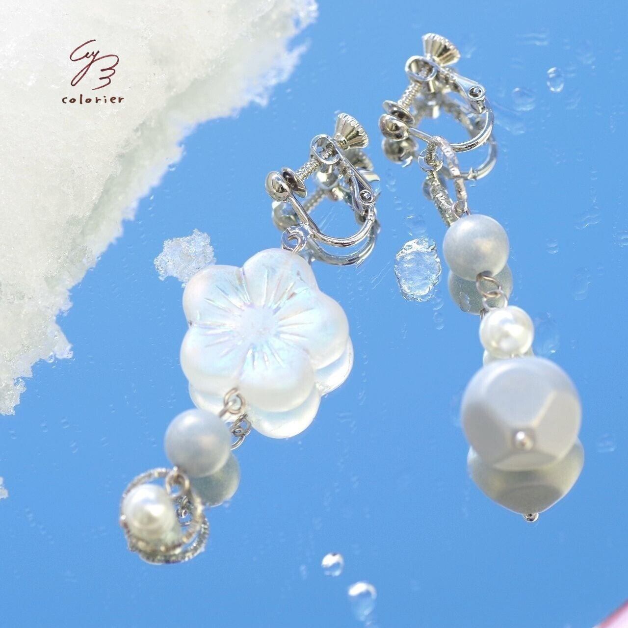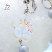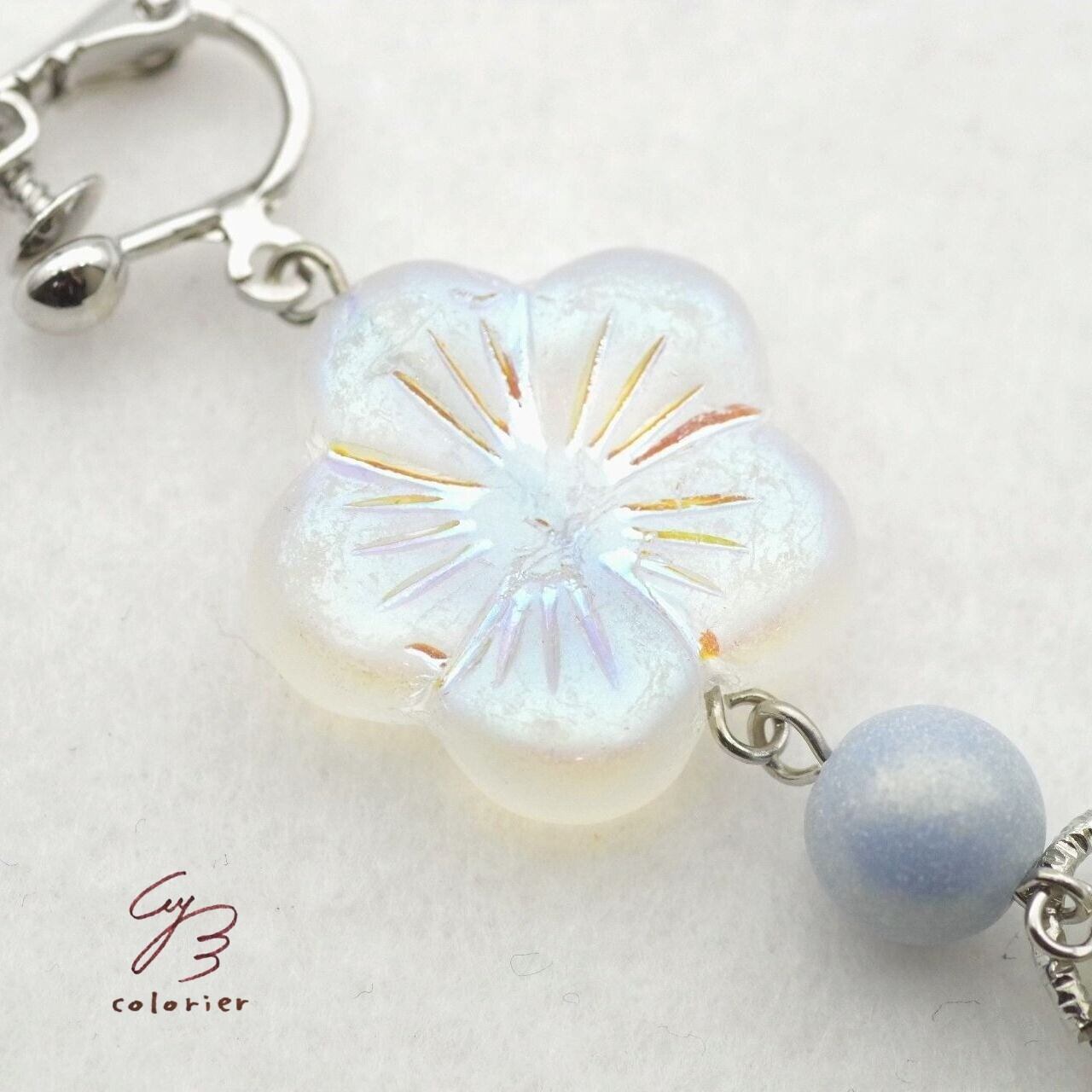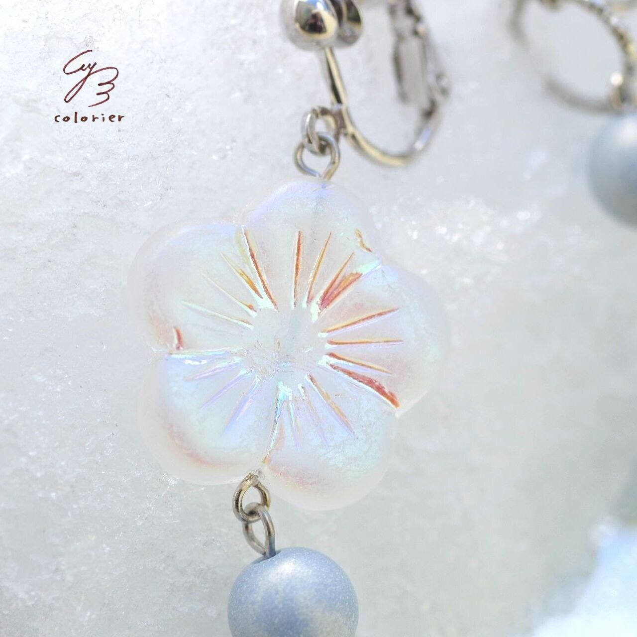 白の梅に合わせて、つや消しパールはくすみが可愛い水色を選びました。