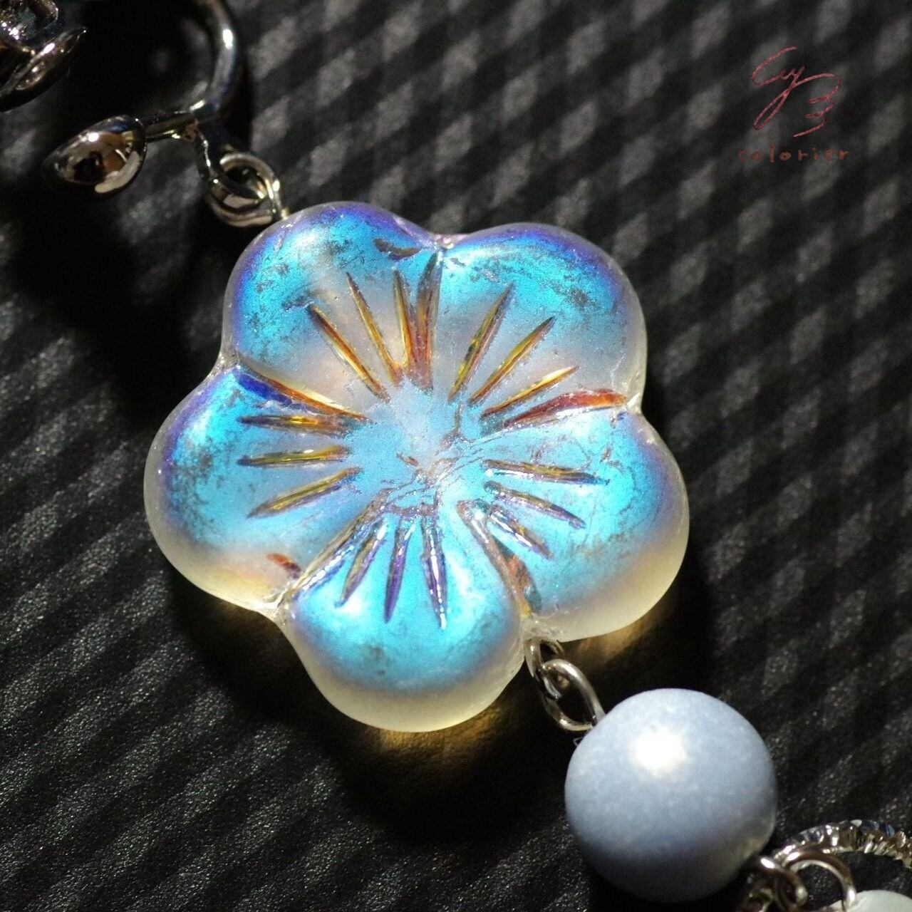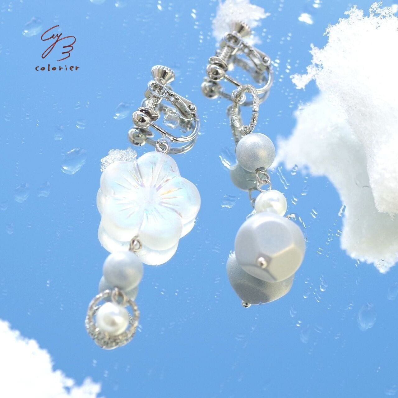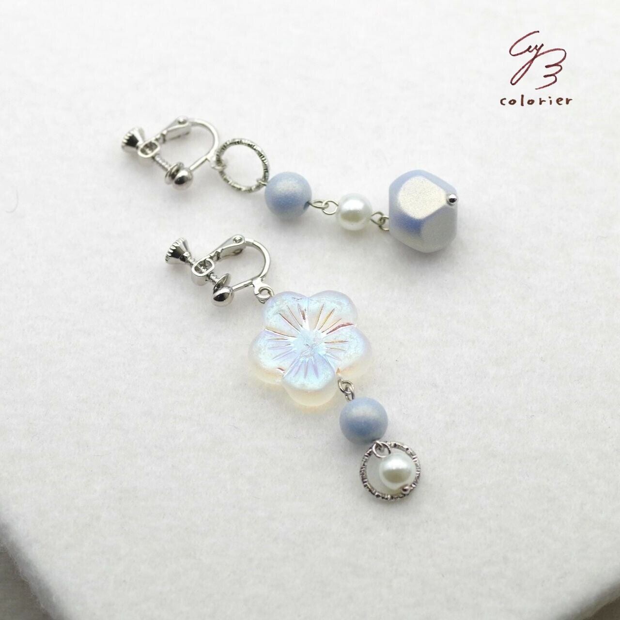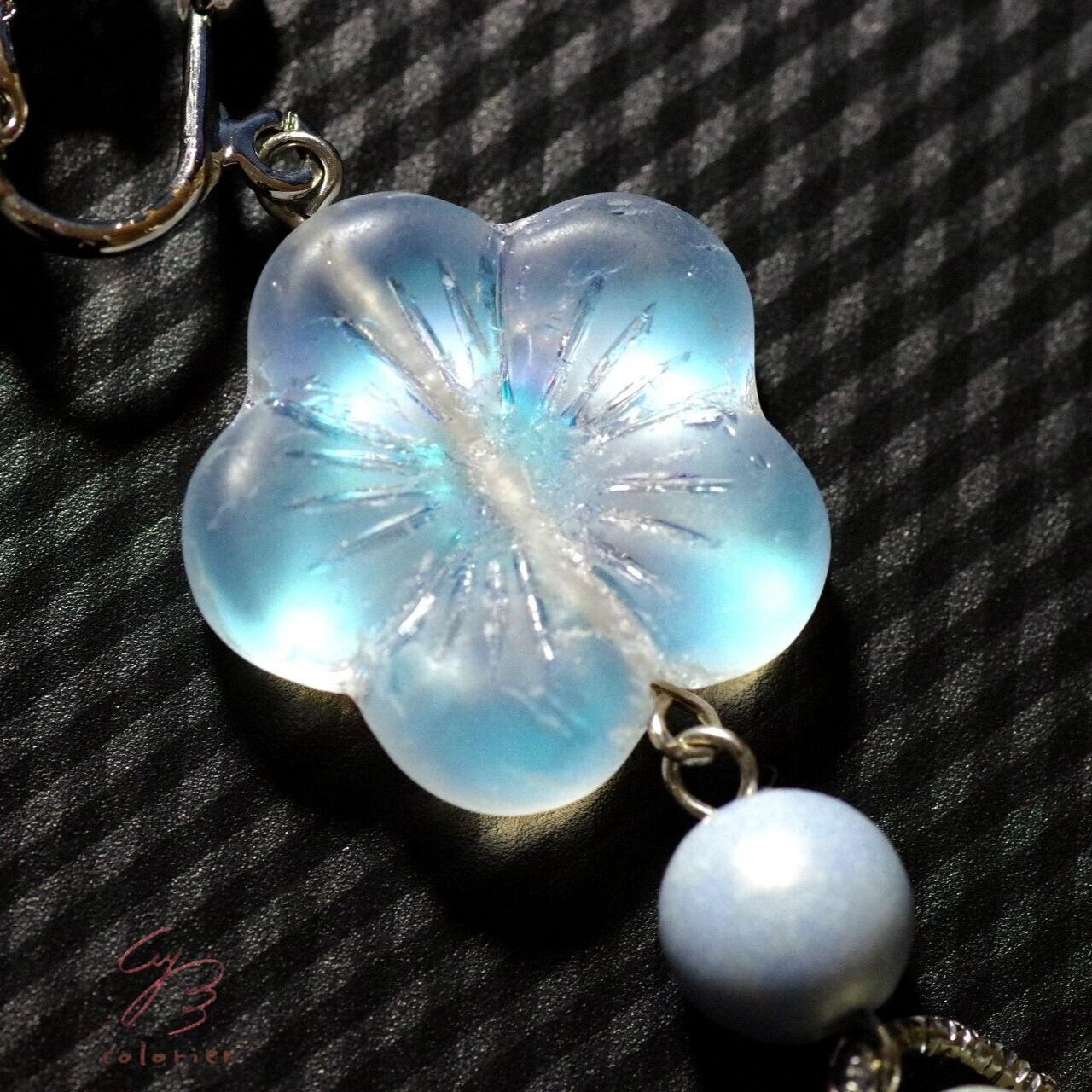 白の梅に合わせて、つや消しパールはくすみが可愛い水色を選びました。